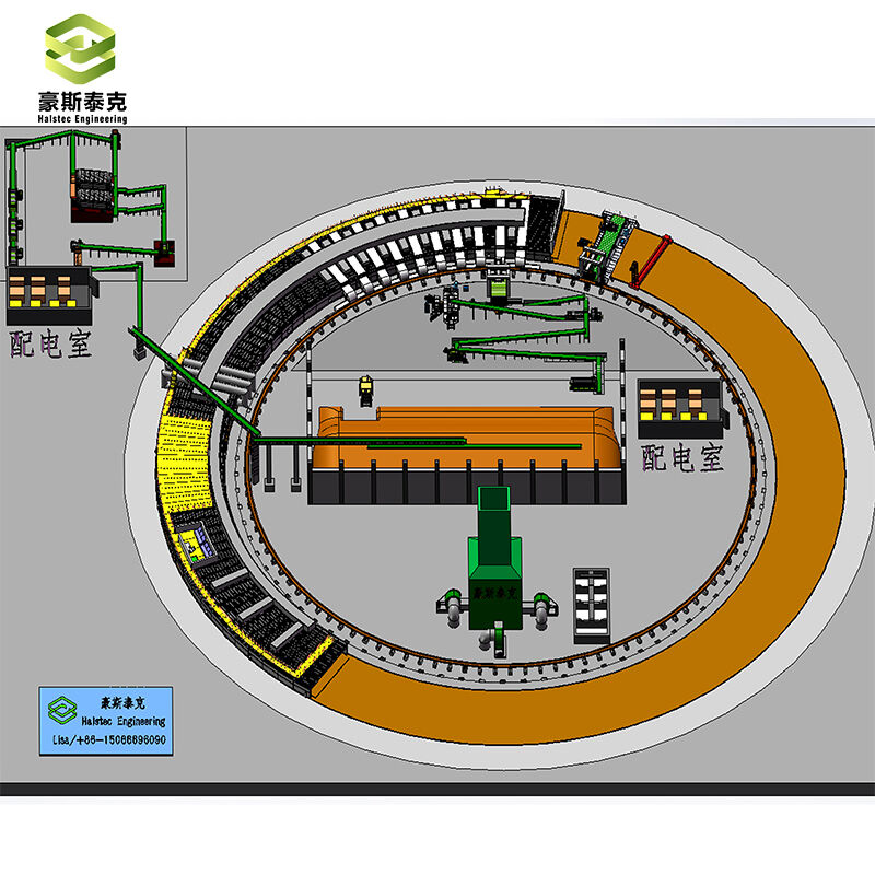 When wet brick adobes are produced by brick making machines, Robot stacking system will place these bricks on the ground. After certain time natural drying, mobile rotary tunnel kiln will come, the drying section of kiln will start work firstly, then burning section of kiln will move forwards and start to burn the dried bricks automatically. Bricks just stay on the ground in the whole working procedure, while kiln will move at preset moving speed.